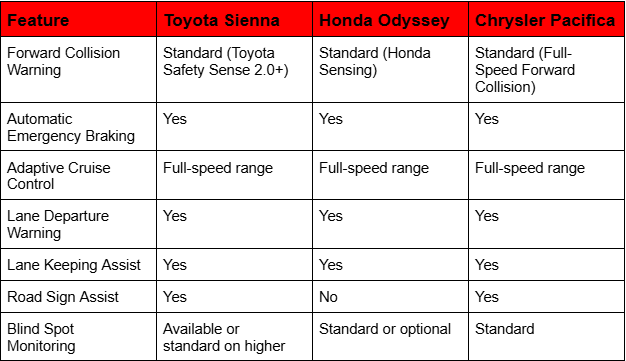 ADAS Features in Popular Minivans